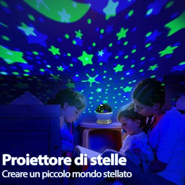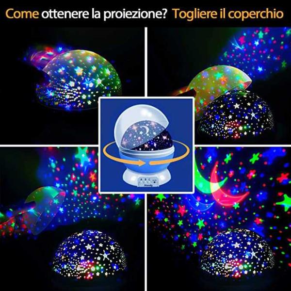 Ideal Night-time Companion -- Star projector night light comes with 4 colors (blue, red, green, warm yellow) with 8 projection effects, a color change mode (slow color change and a 5-second color flash). 360° rotating dynamic projection fills the ceiling and walls of the bedroom with lovely stars, allowing kid to drift off to sleep in a wonderful starry sky